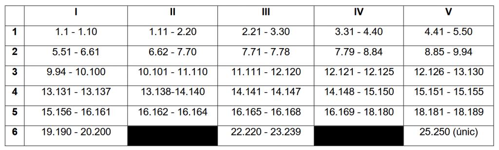 següent codificació (tot i que hi ha buits que estan marcats en negre):